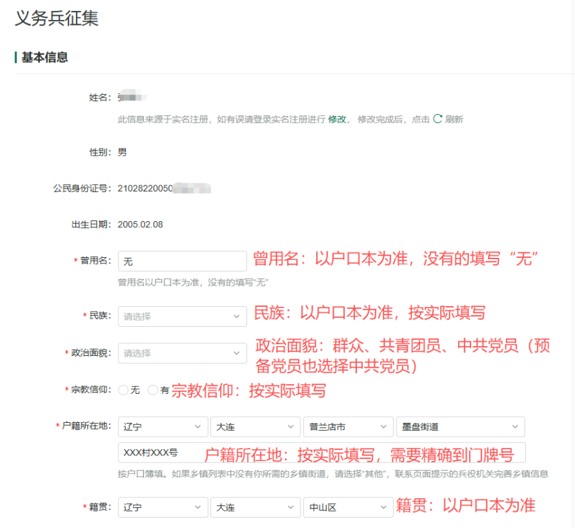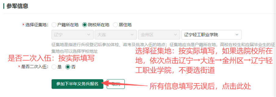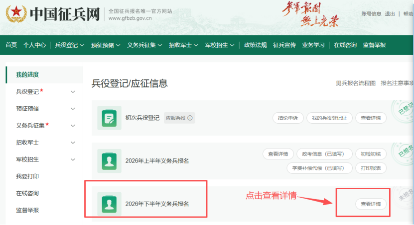 登录中国征兵网(www.gfbzb.gov.cn)后,先进行兵役登记,之后参照下列图文填写。